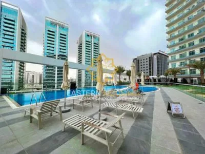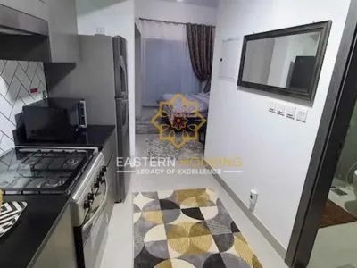 This fully furnished studio apartment is located on a high floor in the Bella Rose Building, Dubai Science Park, offering open-area views and natural light. Priced at AED 62,000/year.